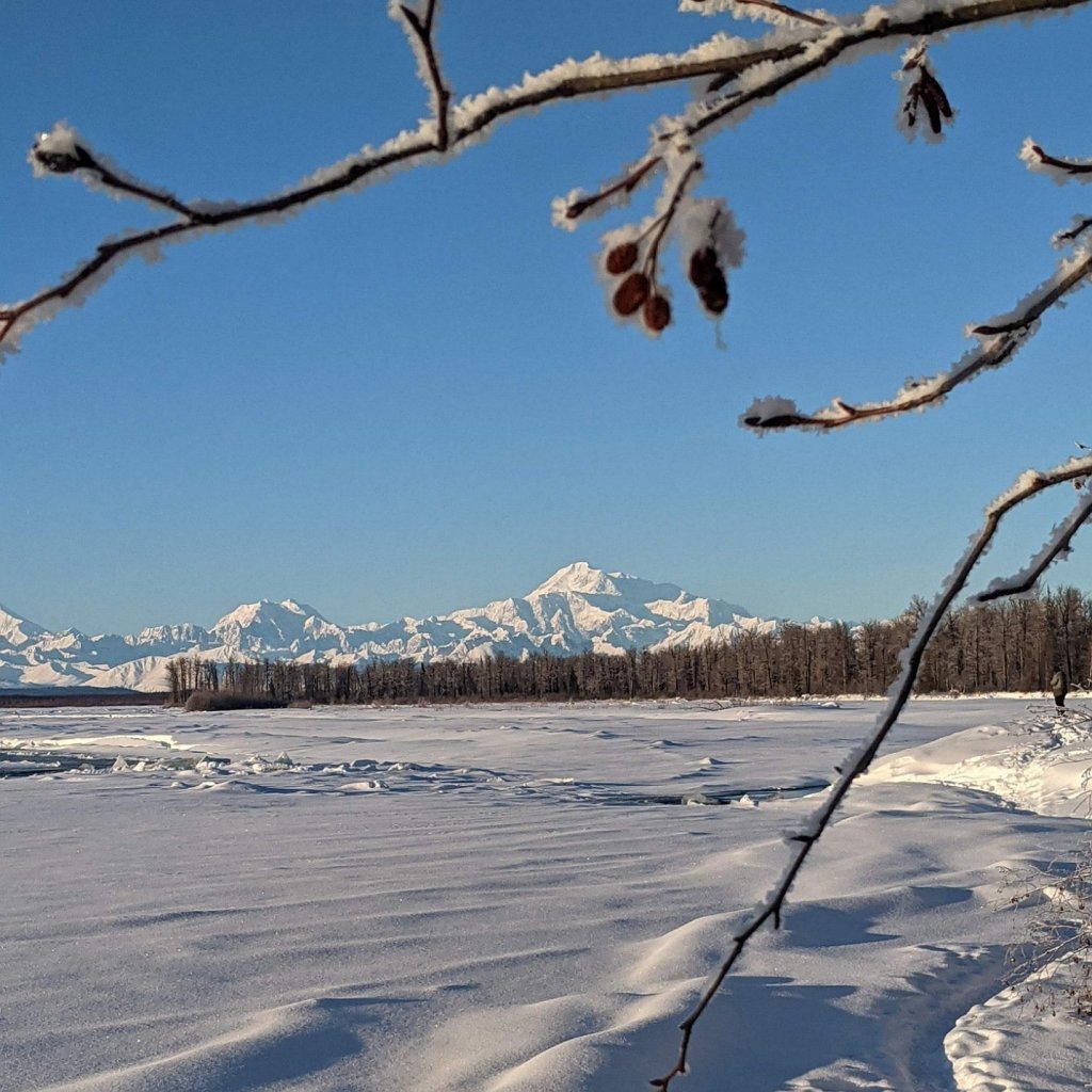 Since there wasn’t a cloud in the sky, we decided to drive the 45 minutes to Talkeetna, a small town located at the base of Mount Denali where we knew we would see great views of North America’s tallest peak. We enjoyed the drive and marveled at our luck that there were perfectly clear skies for viewing Mount Denali. Once we arrived in Talkeetna we headed towards the river where there is a trail and took in the view.