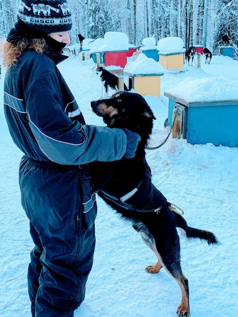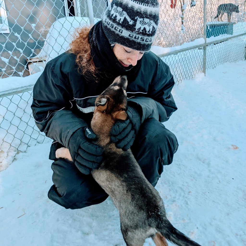 When we arrived back, we were told to thank the dogs by giving them lots of pats and praise. Then it was time to see the puppies. There were two puppies and their momma in a separate kennel and they were very affectionate and playful. We played with them for a bit before heading back to the cabin to warm up and return our gear. We had such a fun time dog sledding. We would definitely do it again.