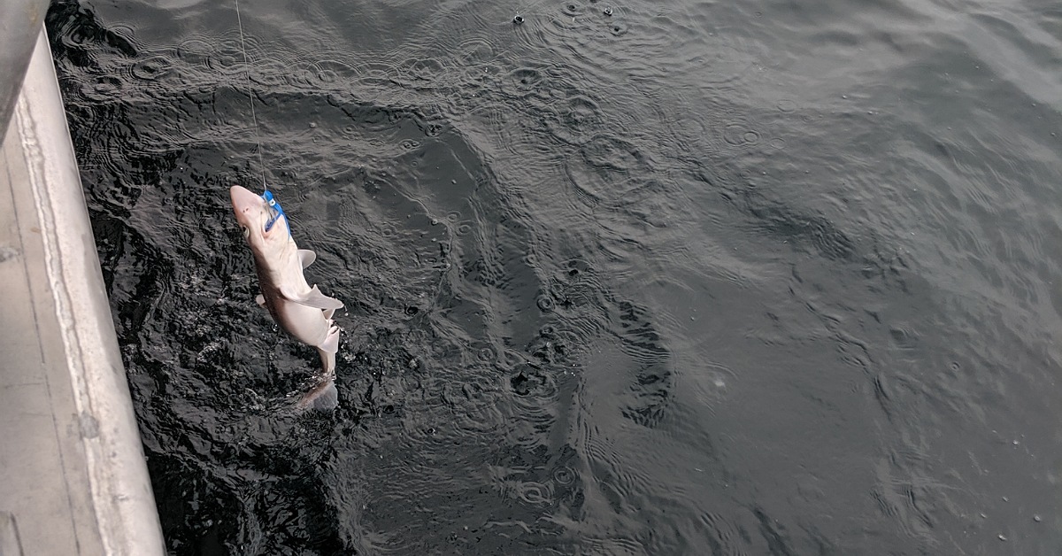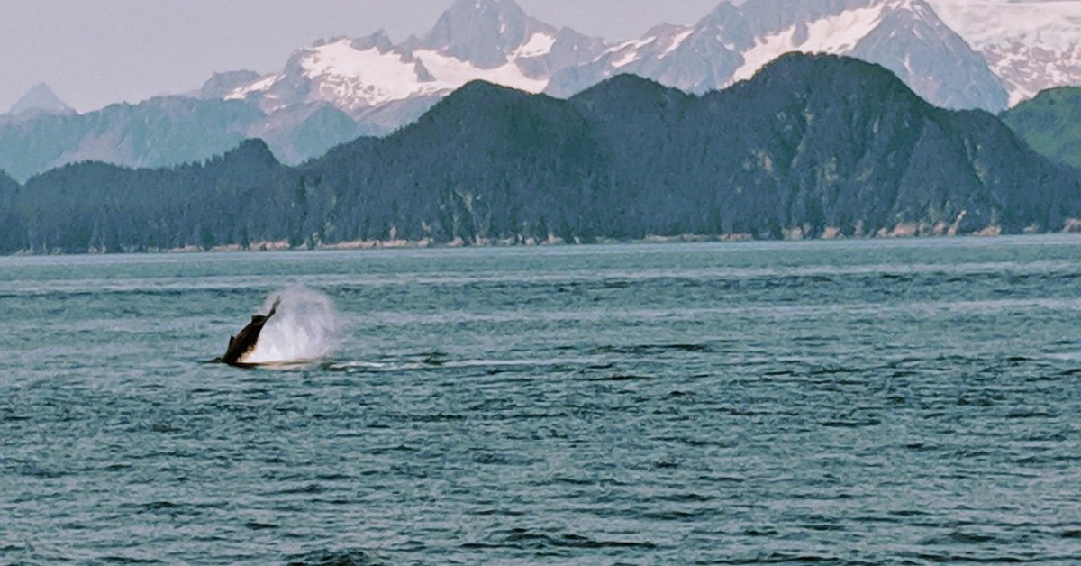 Another must do in Seward is to rent a charter and go out fishing. There are many different charters to choose from that range from half day salmon fishing to all day salmon, rockfish, and halibut fishing. We chose the latter. The day started early. We had to be at the boat by 6am. But when the sun rises at 4:30 in the morning, it makes waking up a bit easier! Heading out of port it was a bit foggy, but as the day progressed, we had beautiful blue skies and calm seas. After about an hour and a half ride out while passing spectacular scenery we started fishing for salmon. Unfortunately, I didn’t have any luck catching salmon, but I did manage to catch a shark! It was also about this time that we spotted whales, and so I gave up on the fishing and watched the whales instead.