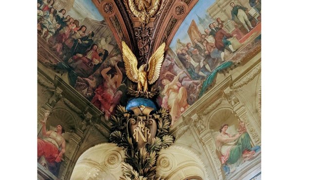 The next morning, we headed to the Louvre but not before picking up a pain au chocolat from a nearby boulangerie. Yum! I wouldn’t mind starting every morning that way! The Louvre now requires that you choose a timed entry when you purchase a ticket online. I had heard so much about how overcrowded the museum was becoming that I decided to choose 9:00—right when they opened. That worked out great and I would highly recommend doing the same. We got in right away and headed straight to the Mona Lisa. Again, hardly any line. My favorite part of the Louvre was actually the building itself. Before it became a famous art museum it was actually a royal palace, and the architecture and art on the ceilings is just beautiful.