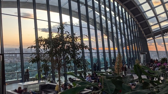 We then went toSky Garden for a view of the city at sunset. Unlike our sunset climb at the O2, we actually did see the sun set. Sky Garden is free, but you do have to book 2 weeks in advance. We enjoyed a drink as we watched the sun go down and the city light up.